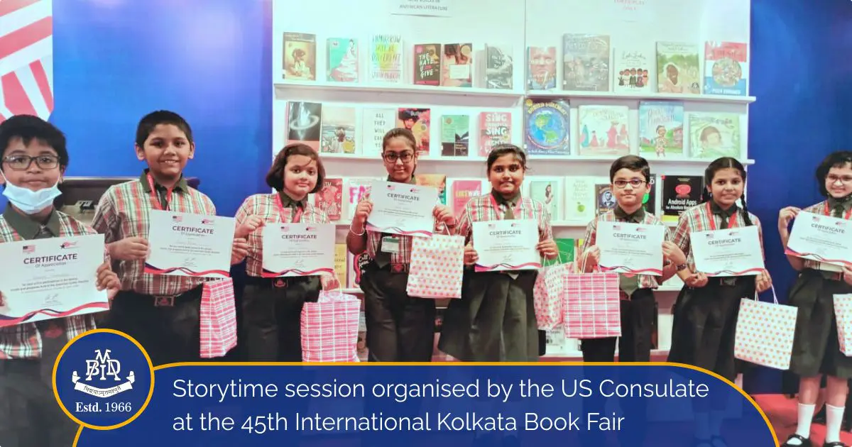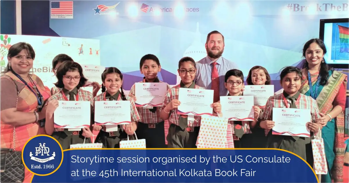 Few students of Classes 4 & 5 participated in the Storytime session organized by the US Consulate at the 45th International Kolkata Book Fair. The program focussed on reading stories and enactment of stories of some extraordinary American women by a group of storytellers. The session was interactive and extremely interesting for the participating students.