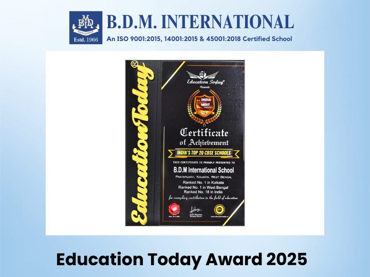 We are proud and pleased to announce that B.D.M. International is Ranked No.1 in Kolkata, No.1 in West Bengal and No.18 in India under the Category – India’s Top 20 CBSE Schools in a survey conducted by EducationToday.
