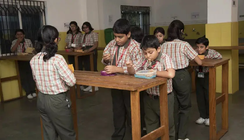 • Our canteen provides wholesome meals for breakfast and lunch in the school. The menu is meticulously planned and ensures that the calorific and nutritional needs of children are met.